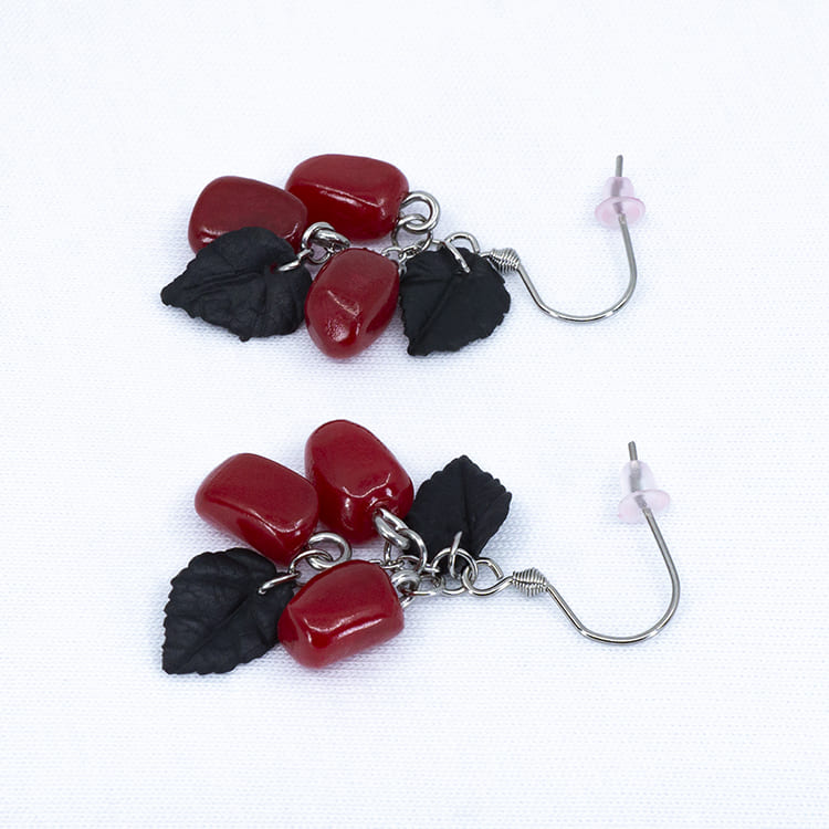 Выбирая наши серьги гранатовые зёрна грозди с чёрными листочками для себя или в подарок, вы несомненно будете в восторге от качественного изделия из медицинской стали и полимерной глины. Серьги смотрятся изысканно и подойдут как для торжественных случаев, так и для повседневной носки.
