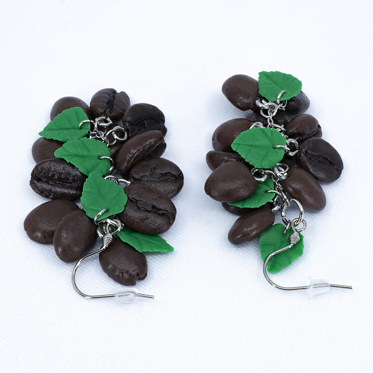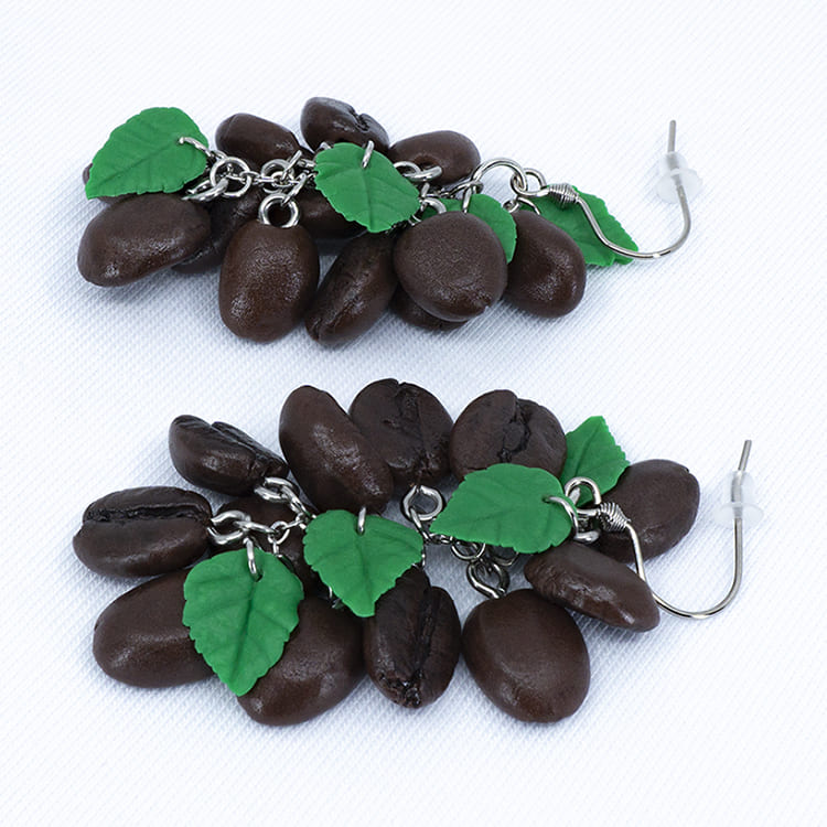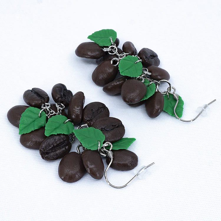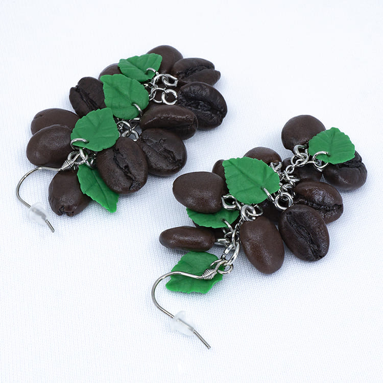 Украшения всегда были средством демонстрации статуса, и что бы кто ни говорил не только костюм подчеркивает индивидуальность, но и правильно подобранные украшения. Наши серёжки кофейные зёрна грозди с зелёными листочками идеально сочетаются с любым нарядом и привлекают внимание.