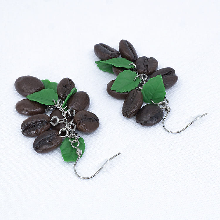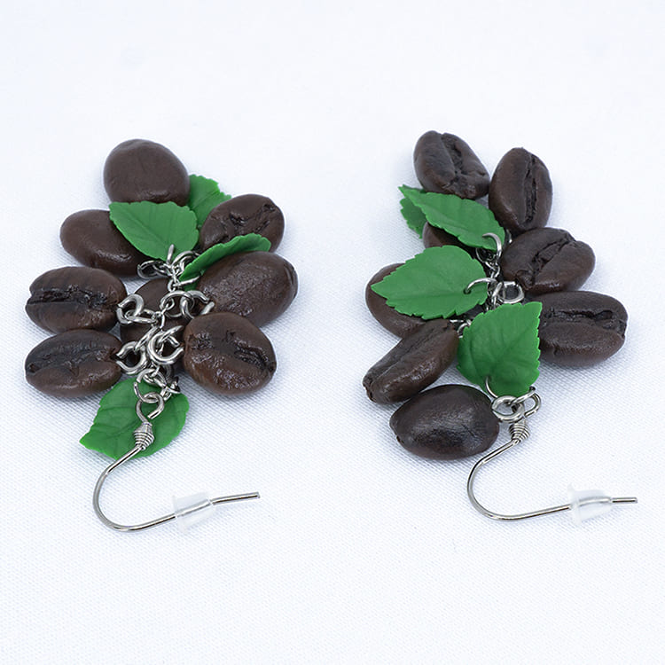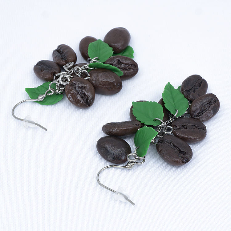 Украшения всегда были средством демонстрации статуса, и что бы кто ни говорил не только костюм подчеркивает индивидуальность, но и правильно подобранные украшения. Наши серёжки кофейные зёрна грозди с зелёными листочками идеально сочетаются с любым нарядом и привлекают внимание.