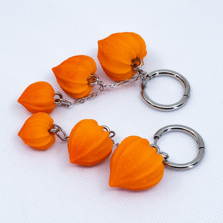 Выбирая наши серьги конго физалисы на цепочке для себя или в подарок, вы несомненно будете в восторге от качественного изделия из медицинской стали и полимерной глины. Серьги физалисы смотрятся изысканно и подойдут как для торжественных случаев, так и для повседневной носки.