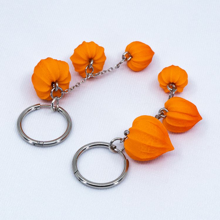 Выбирая наши серьги конго физалисы на цепочке для себя или в подарок, вы несомненно будете в восторге от качественного изделия из медицинской стали и полимерной глины. Серьги физалисы смотрятся изысканно и подойдут как для торжественных случаев, так и для повседневной носки.