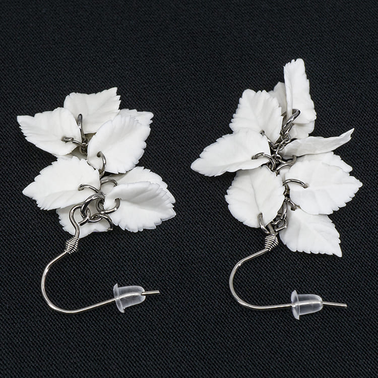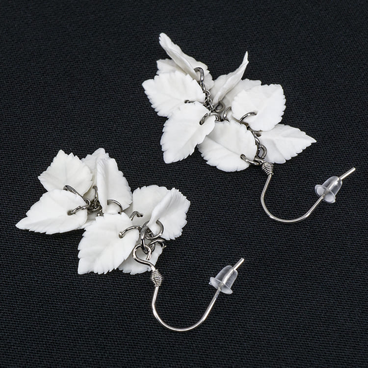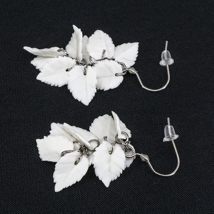 Выбирая наши серьги листики белые грозди матовые для себя или в подарок, вы несомненно будете в восторге от качественного изделия из медицинской стали и полимерной глины. Серьги смотрятся изысканно и подойдут как для торжественных случаев, так и для повседневной носки.