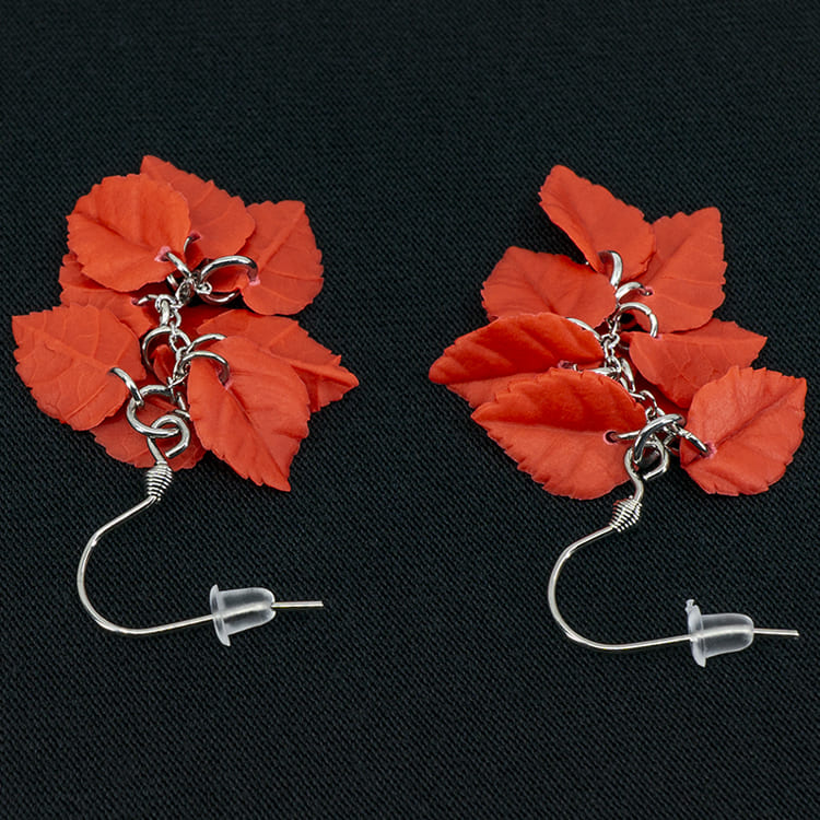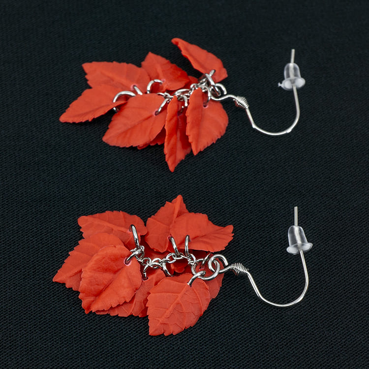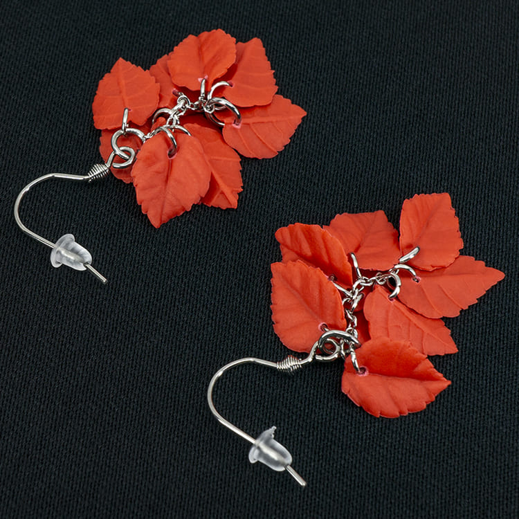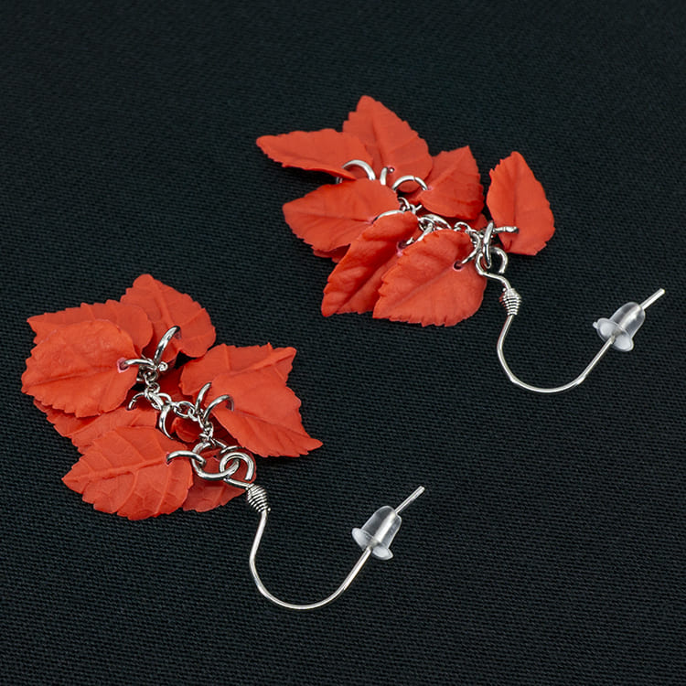 Серьги листики красные грозди матовые