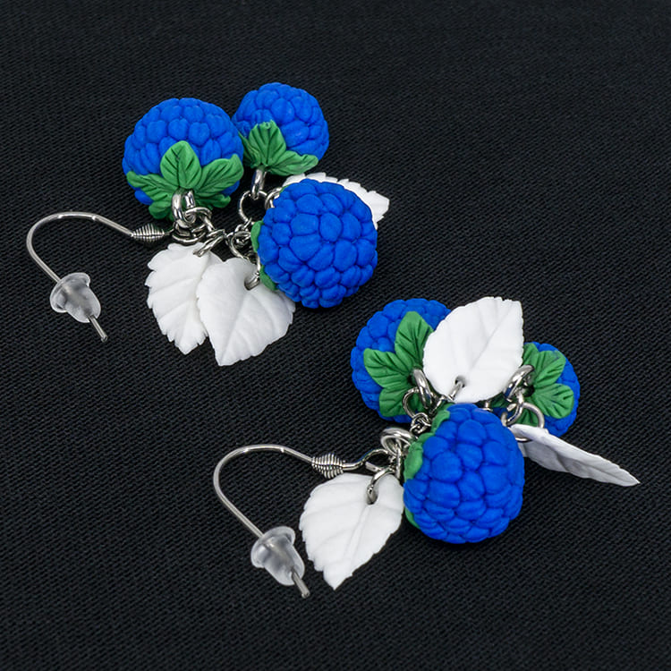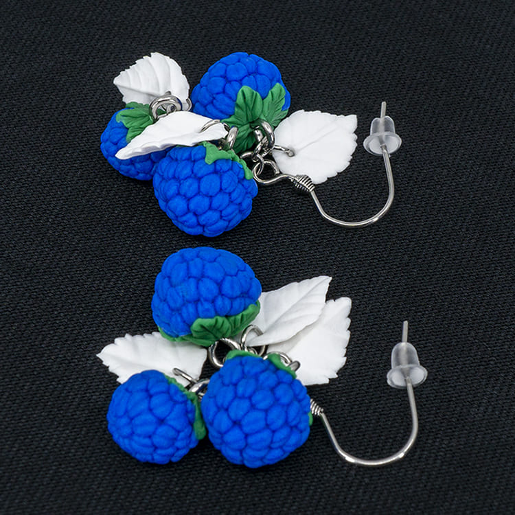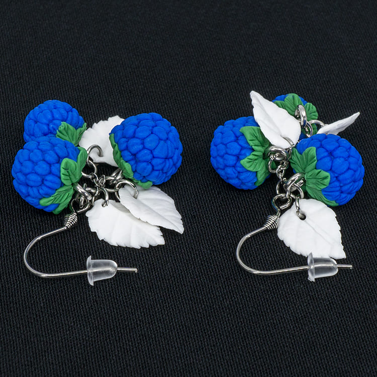 Выбирая наши серьги малинки синие грозди с белыми листочками для себя или в подарок, вы несомненно будете в восторге от качественного изделия из медицинской стали и полимерной глины. Серьги смотрятся изысканно и подойдут как для торжественных случаев, так и для повседневной носки.