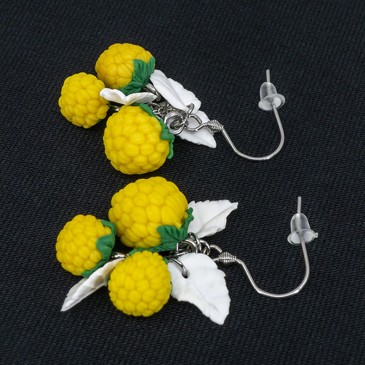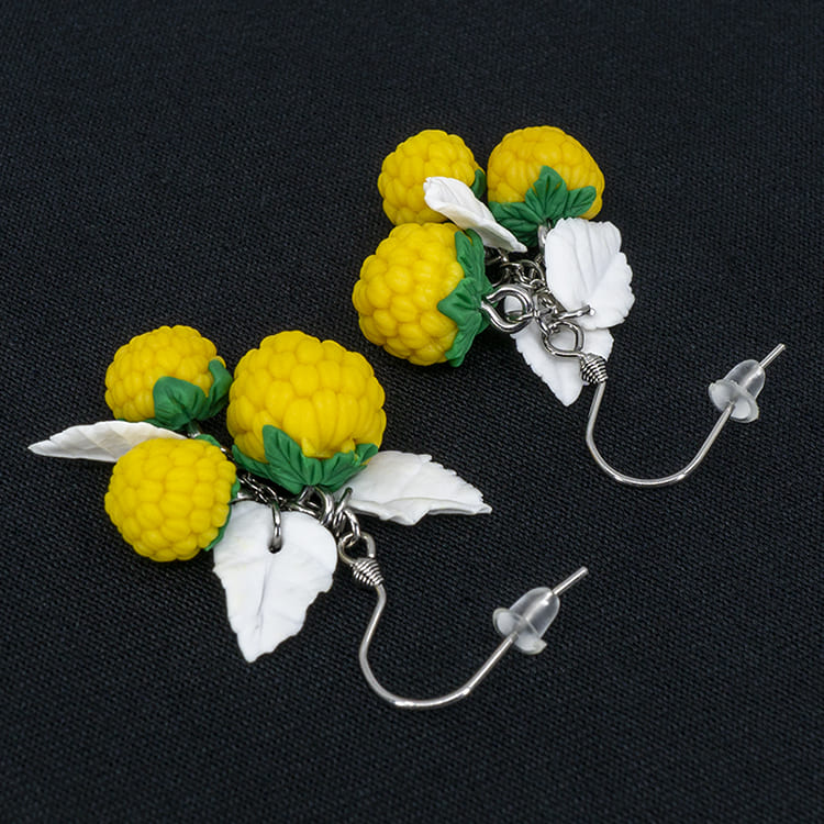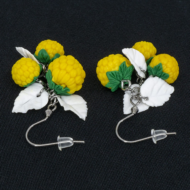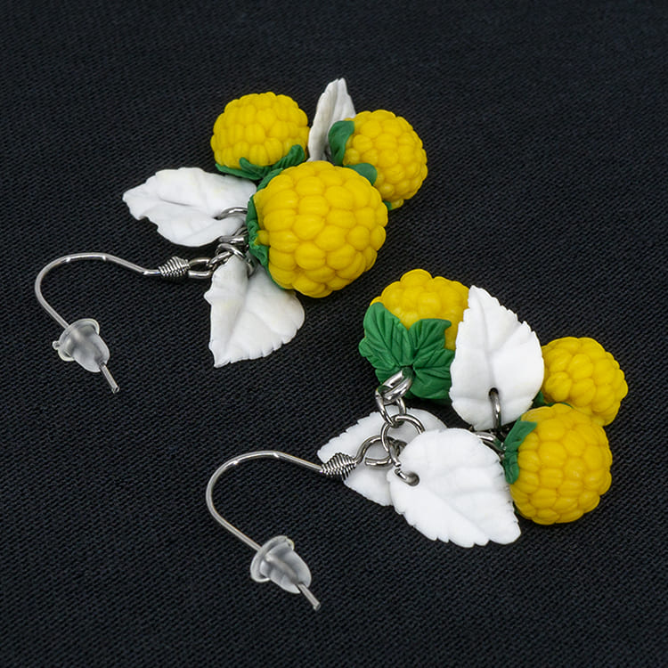 Выбирая наши серьги малинки жёлтые грозди с белыми листочками для себя или в подарок, вы несомненно будете в восторге от качественного изделия из медицинской стали и полимерной глины. Серьги смотрятся изысканно и подойдут как для торжественных случаев, так и для повседневной носки.