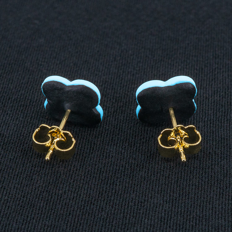 Серьги пусеты клевер Van Cleef лазурные (золотые)