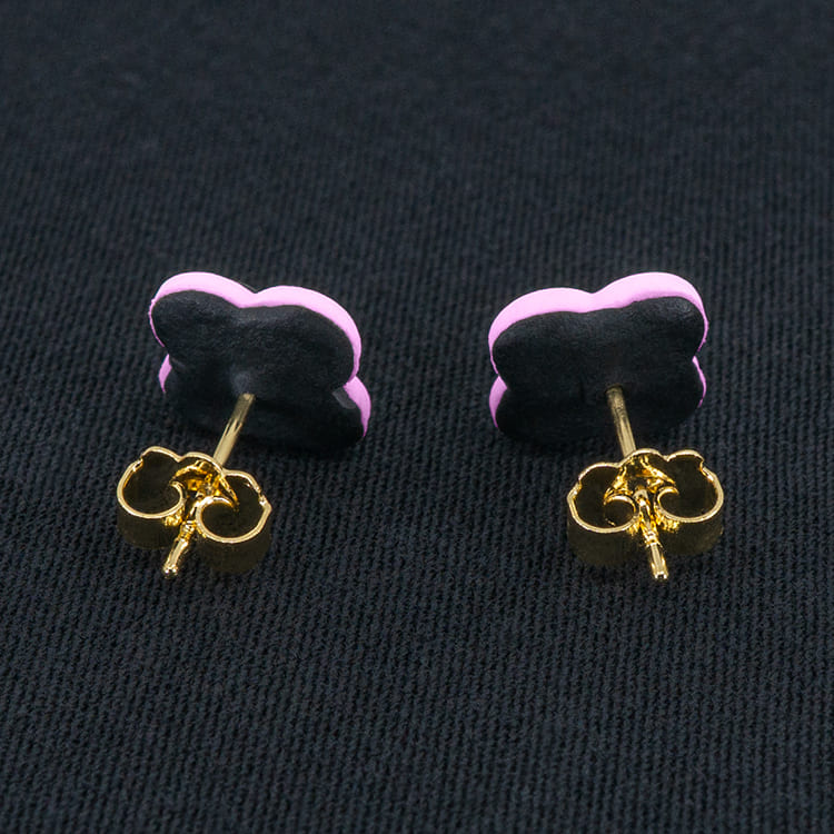 Серьги пусеты клевер Van Cleef ледяные розовые (золотые)