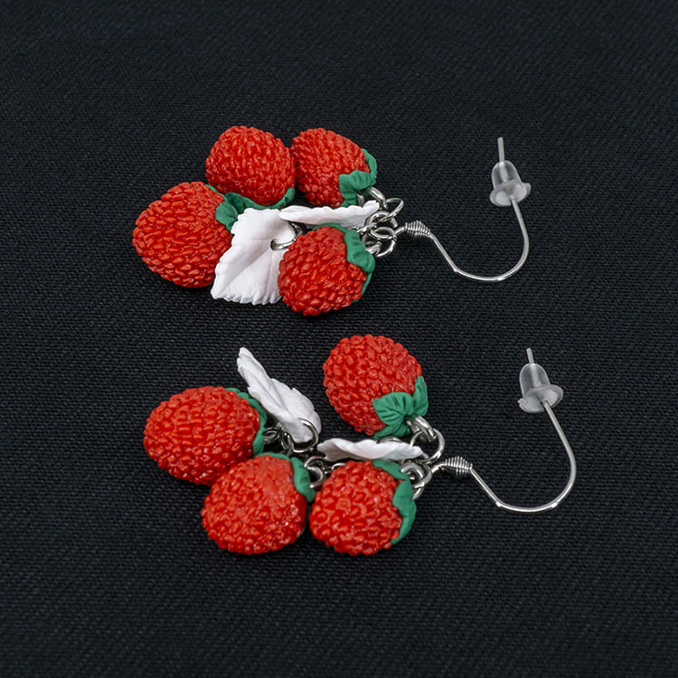 Украшения всегда были средством демонстрации статуса, и что бы кто ни говорил не только костюм подчеркивает индивидуальность, но и правильно подобранные украшения. Наши серёжки землянички грозди с белыми листочками идеально сочетаются с любым нарядом и привлекают внимание.